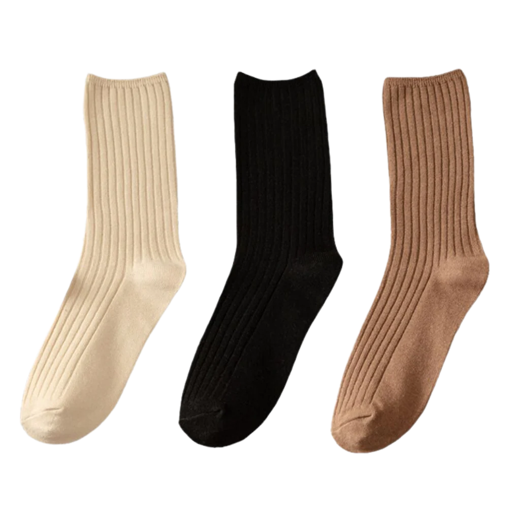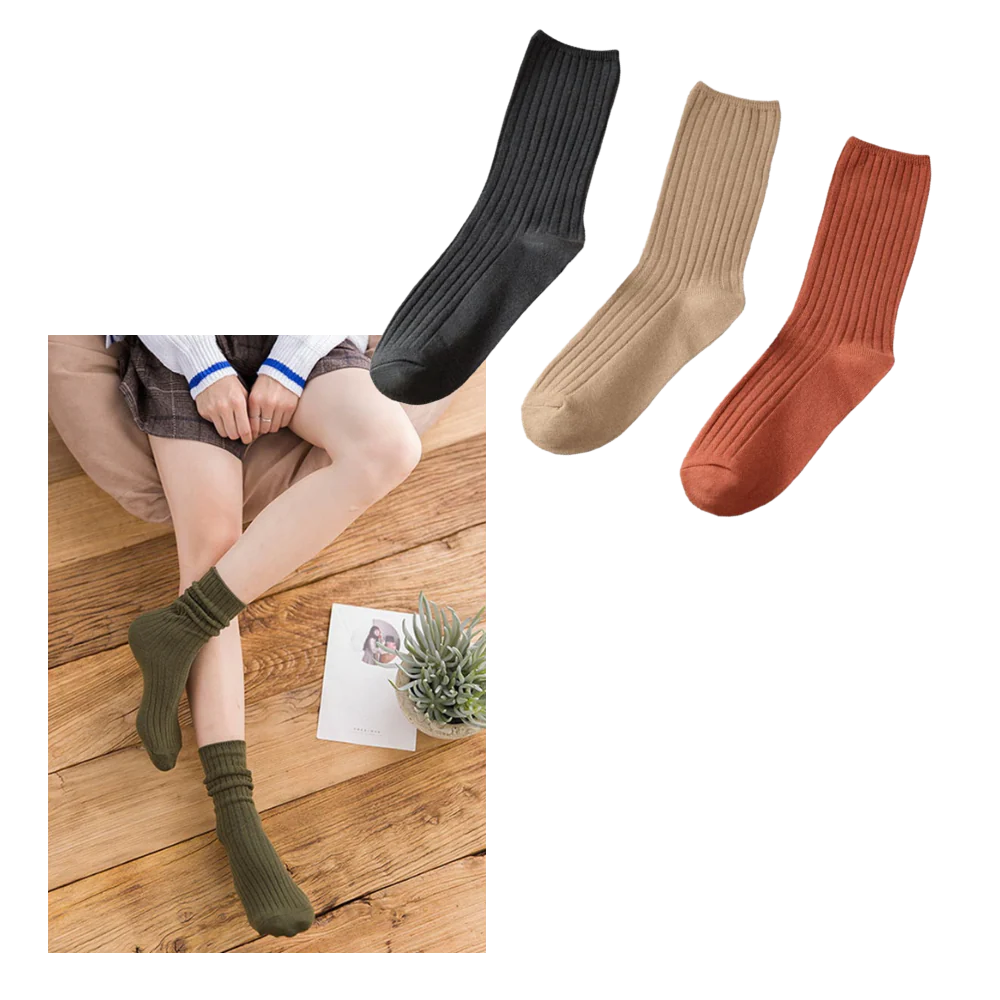 3 Paires de chaussettes côtelées en coton pour femmes