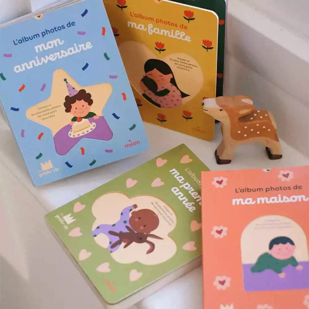 Imprimez vos photos préférées, glissez-les dans votre album. Partagez avec bébé ou en famille… Retour de l’album souvenirs à lire en famille ! Une nouvelle collection d’albums-imagiers à compléter avec ses propres photos, en partenariat avec Ma petite vie, pour compiler les plus belles photos de famille de bébé et éveiller sa curiosité, loin des écrans. Aucun autre imagier ne passionnera plus votre tout-petit que celui de sa propre vie, représentant son environnement, son foyer et ses objets familiers. À lire blottis l’un contre l’autre, dès 12 mois !