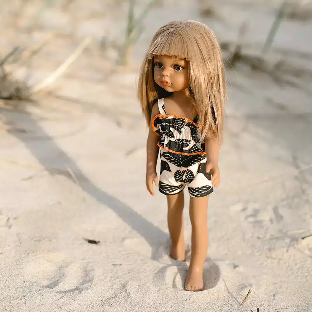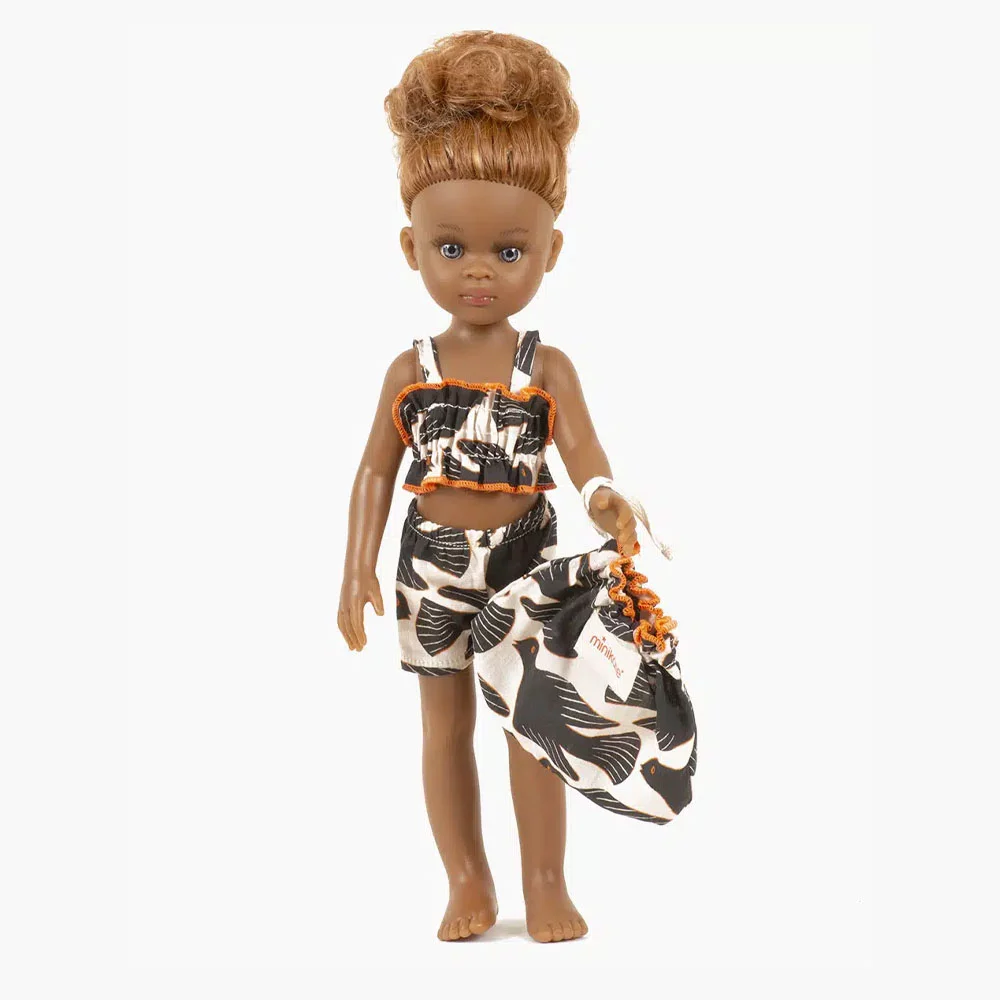 Maillot de bain rétro 2 pièces en jersey pour poupées Amigas 32cm avec pochon. 100% coton Fabriqué en France.
