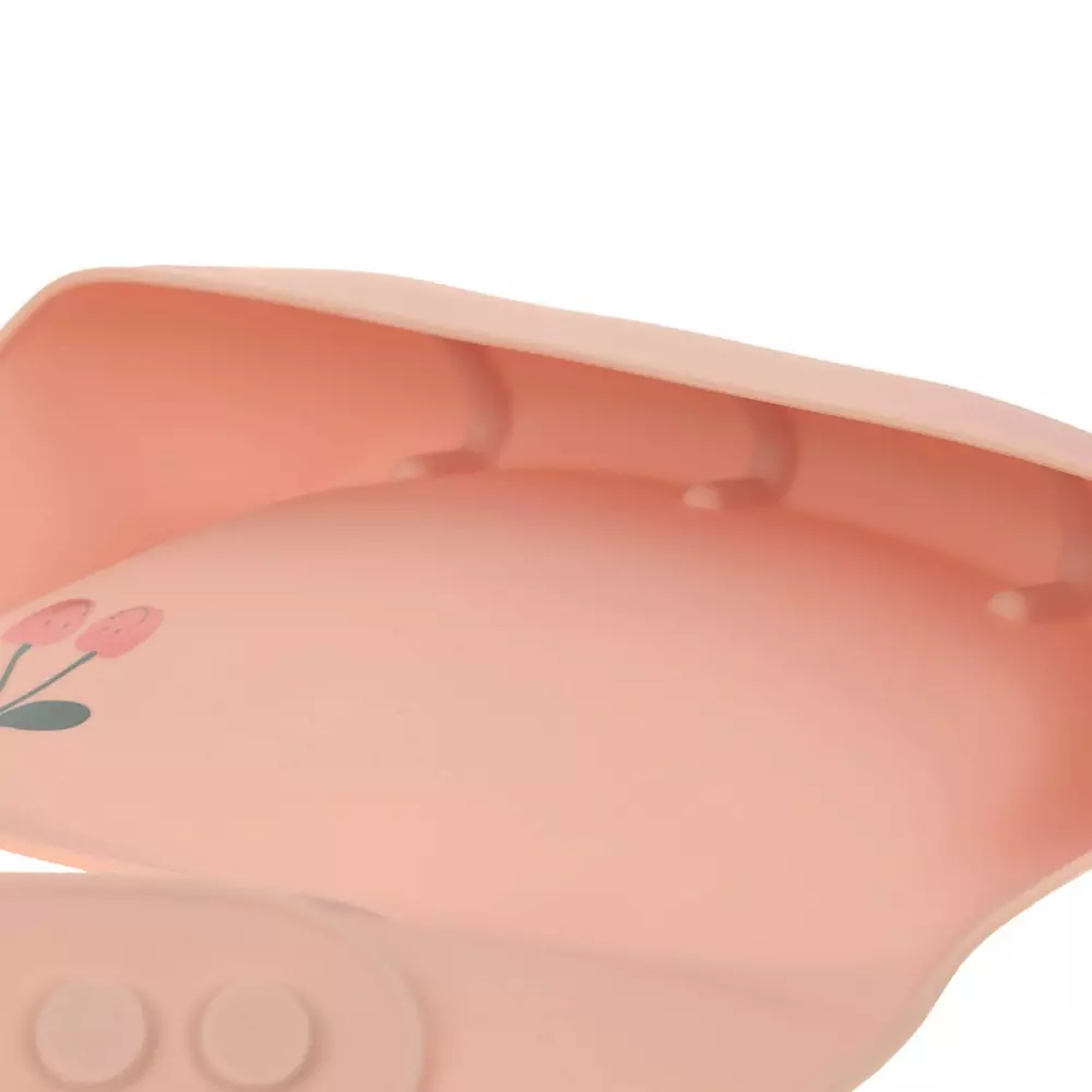 Le bavoir en silicone LÄSSIG  Happy Fruits est le compagnon idéal pour manger. La section profonde et robuste attrape tout ce qui n’entre pas dans la bouche. Le bavoir a 6 réglages et va au lave-vaisselle. Dimensions : 22,2 x 1,3 x 30,5 cm / 100 g Matériau : silicone – Sans BPA Convient aux enfants de 6 à 24 mois Facile à nettoyer : il suffit de nettoyer à la main ou au lave-vaisselle