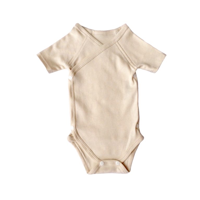 Ouverture croisée avec boutons pressions. Jersey de coton biologique GOTS.