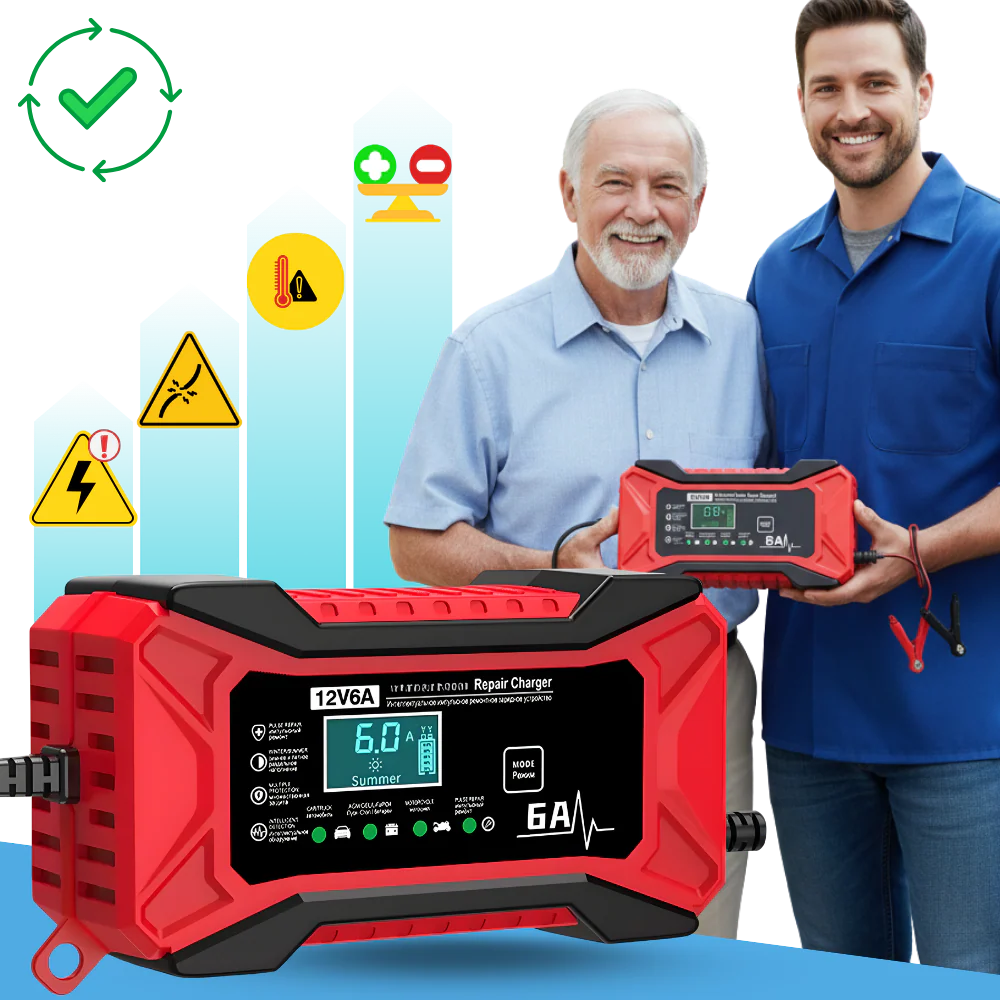 Chargeur de batterie intelligent 12 V pour véhicules - Protection totale, risque minimal - Ozerty