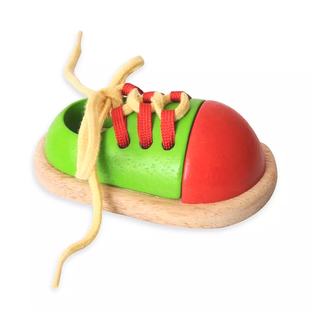 Apprenez à nouer vos chaussures ! Les lacets de cette chaussure en bois peuvent aider les petits à développer leur coordination œil-main et leur motricité fine afin qu’ils puissent attacher leurs chaussures par eux-mêmes un jour. Pratiquez le laçage des chaussures avec cette aide pédagogique conçue pour les enfants Peut enseigner plusieurs méthodes différentes à partir de styles à un et deux nœuds et au-delà Conception portable pour que vous puissiez vous entraîner à lacer les chaussures n’importe où Fabriqué de manière durable en Thaïlande en utilisant du bois d’hévéa sans produits chimiques, de la colle sans formaldéhyde, des pigments…