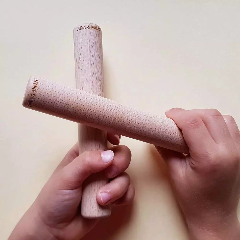 Ces claves sont 100 % made in France de Nina & Miles et il sâagit de vĂ©ritables instruments de musique. En hĂȘtre massif issu de forĂȘts françaises gĂ©rĂ©es durablement et dâune Ă©paisseur assez importante, leur son est trĂšs clair et dâune trĂšs belle rĂ©sonance. Ces belles claves sont parfaitement adaptĂ©es aux petites mains mais pas que. Elles seront sans doute aussi apprĂ©ciĂ©es par les adultes et, surtout, les musiciens ! Quant au conditionnement, la marque optĂ© pour une solution pratique et durable. Chaque paire est livrĂ©e avec deux bracelets Ă©lastiques ce qui permettra de bien les maintenir ensemble. Par ailleurs,âŠ