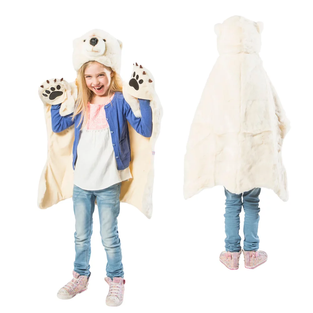 Découvrez ce magnifique déguisement pour enfant à l’effigie de l’Ours polaire de la marque Wild and Soft. Il est très facile à mettre car il s’enfile comme une capuche, votre enfant pourra également mettre ses mains à l’intérieur. C’est également un bel élément de décoration, alors pourquoi pas l’utiliser comme dessus de lit enfant ou comme tapis pour une décoration atypique ! Il est fabriqué en fausse fourrure de qualité exceptionnelle, ce qui les rend merveilleusement douces. Offrez-les comme cadeau unique et assurez aux enfants des heures de jeu. Les pattes sont idéales pour glisser sur les mains et la cape est douce et…