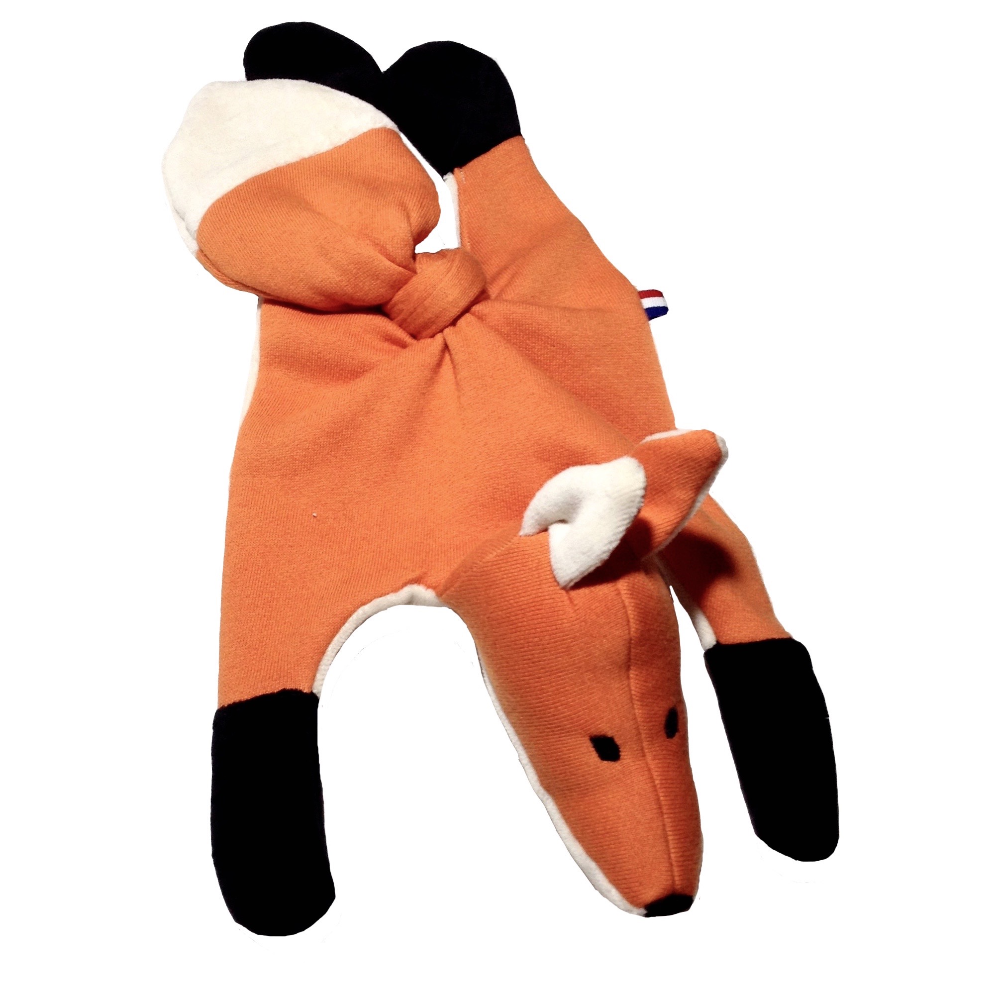 Doudou Renard Goupil en tissus velours et sweat de cotons 100% biologiques certifiés GOTS.