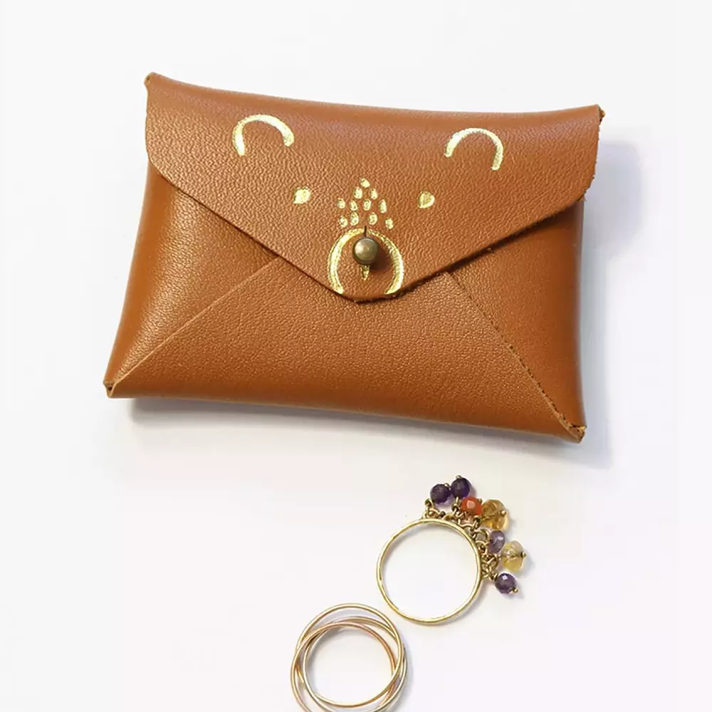 Mini pochette cuir ourson caramel