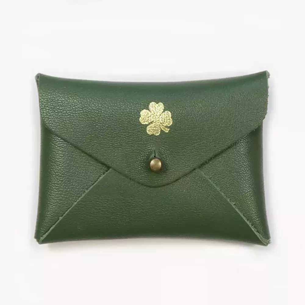 Mini pochette cuir trefle agave