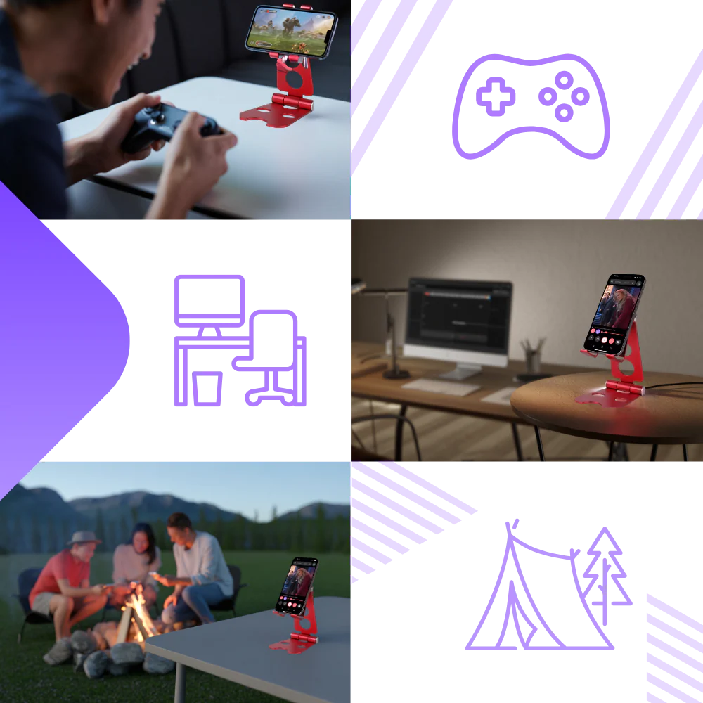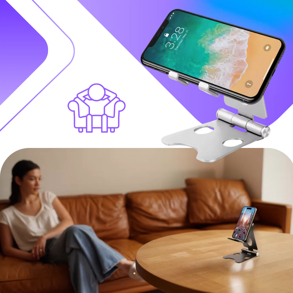 Regardez confortablement des vidéos sur votre smartphone ou votre tablette grâce à ce support pliable et pivotant.