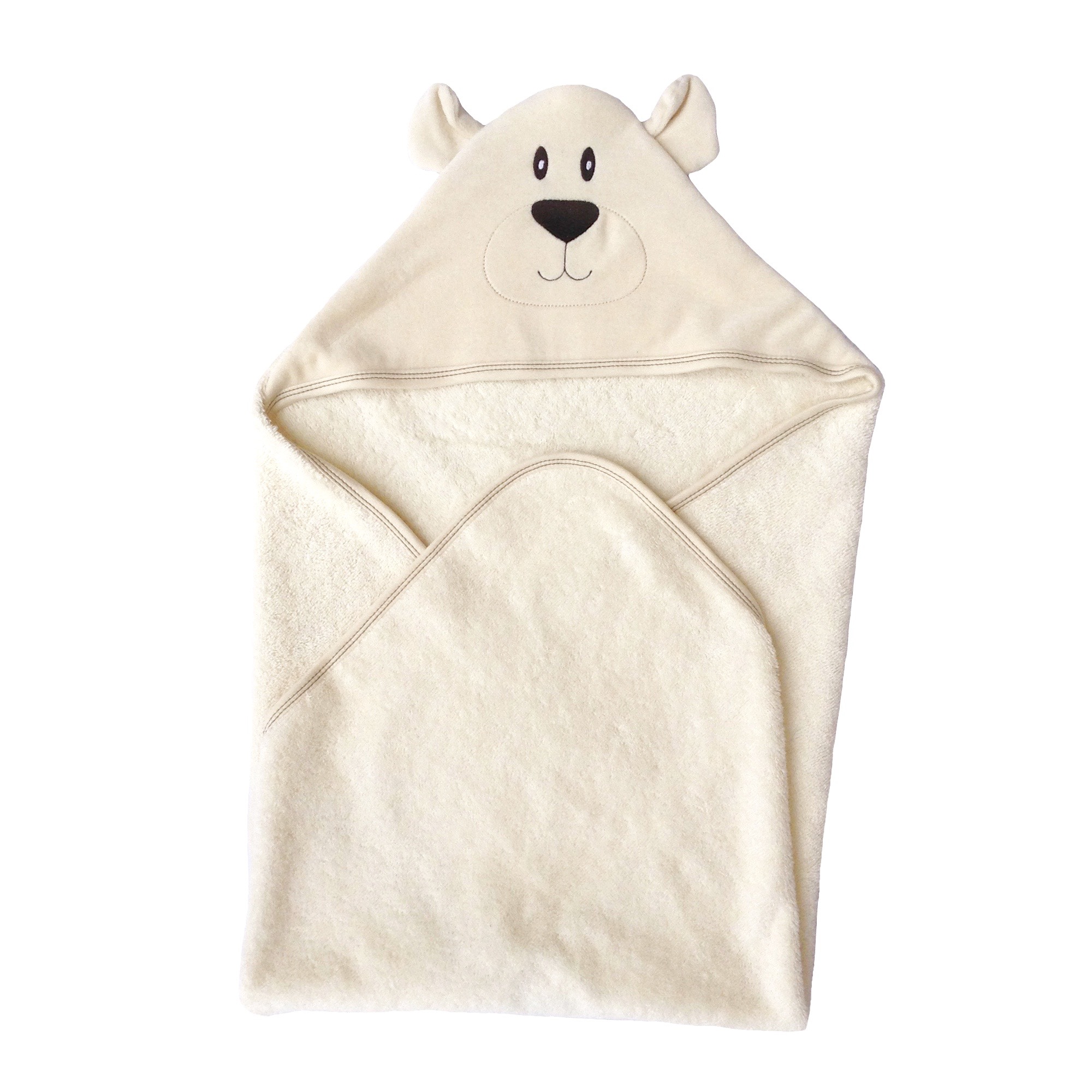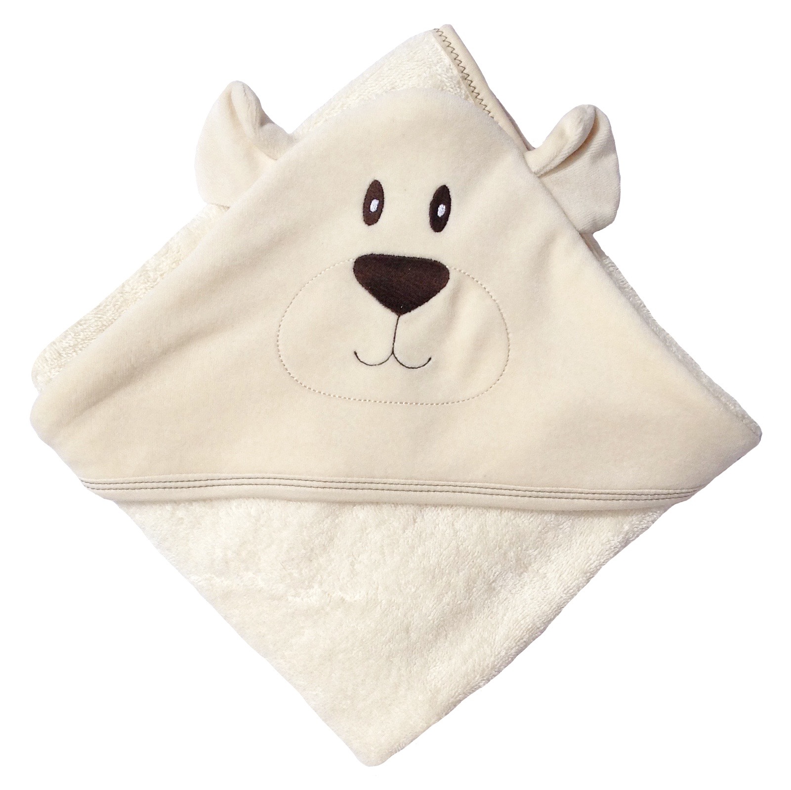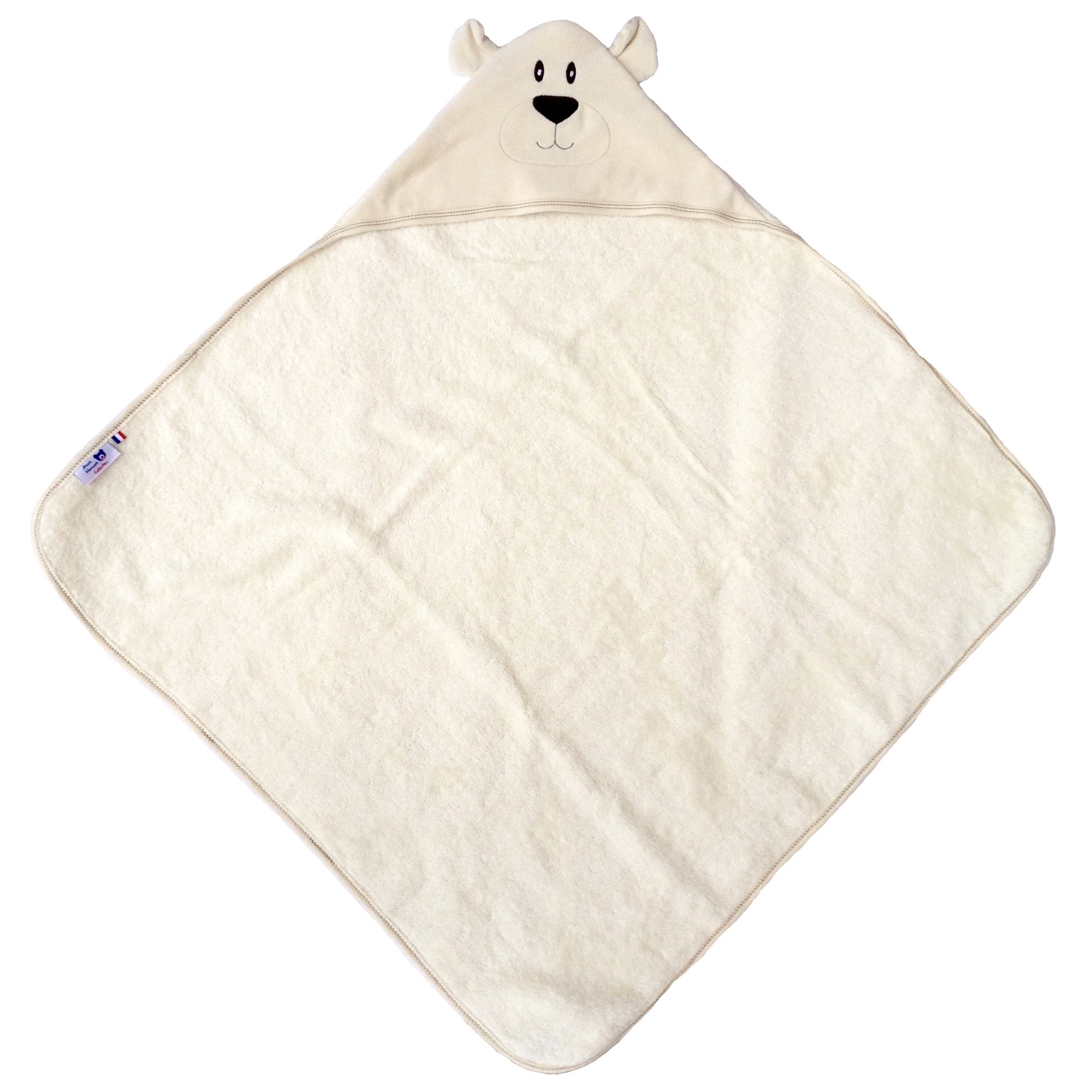 Carré éponge double face avec capuche velours naturel brodée ours.